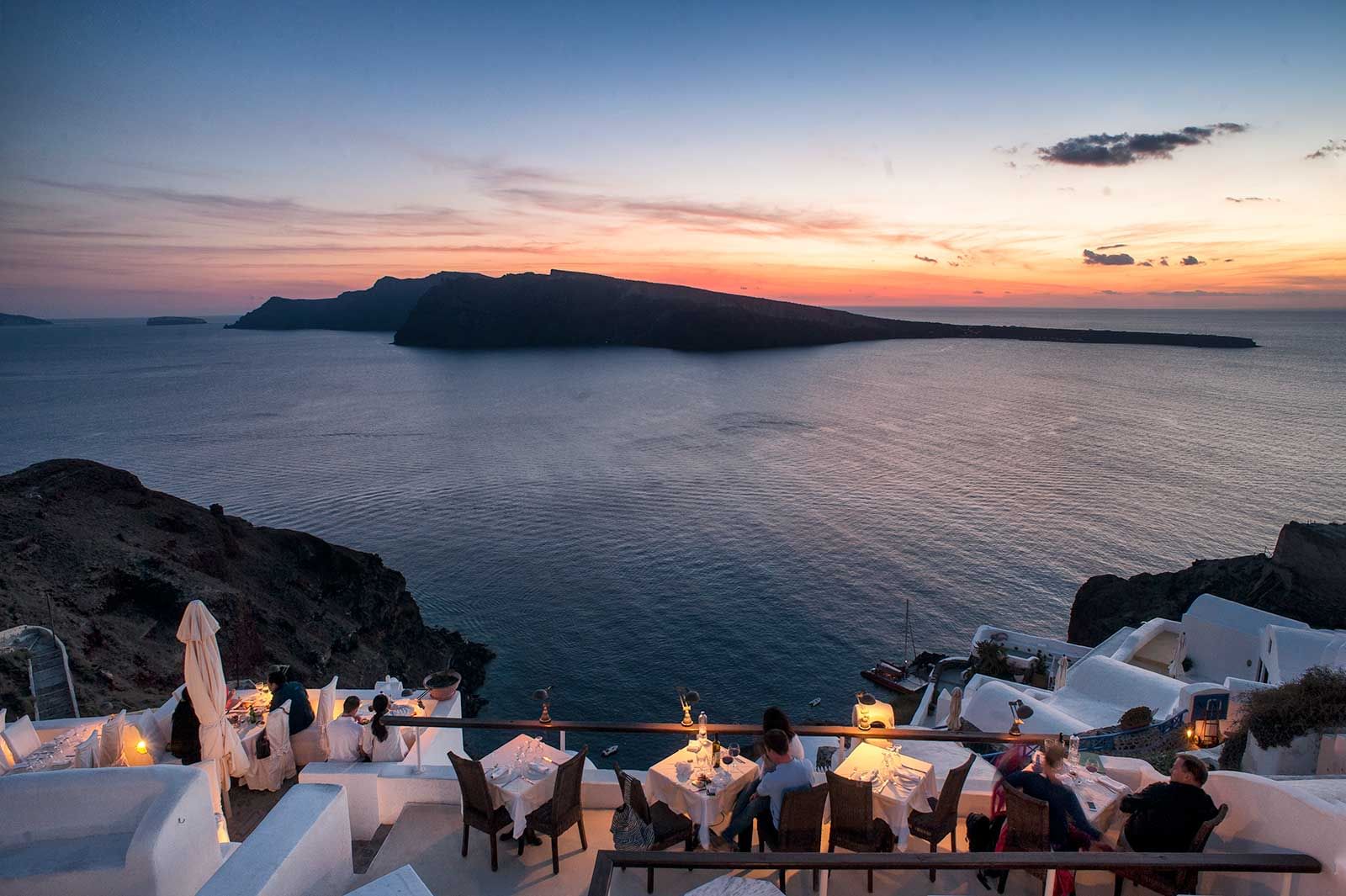 A Romantic Dining Experience overlooking the Caldera from Oia