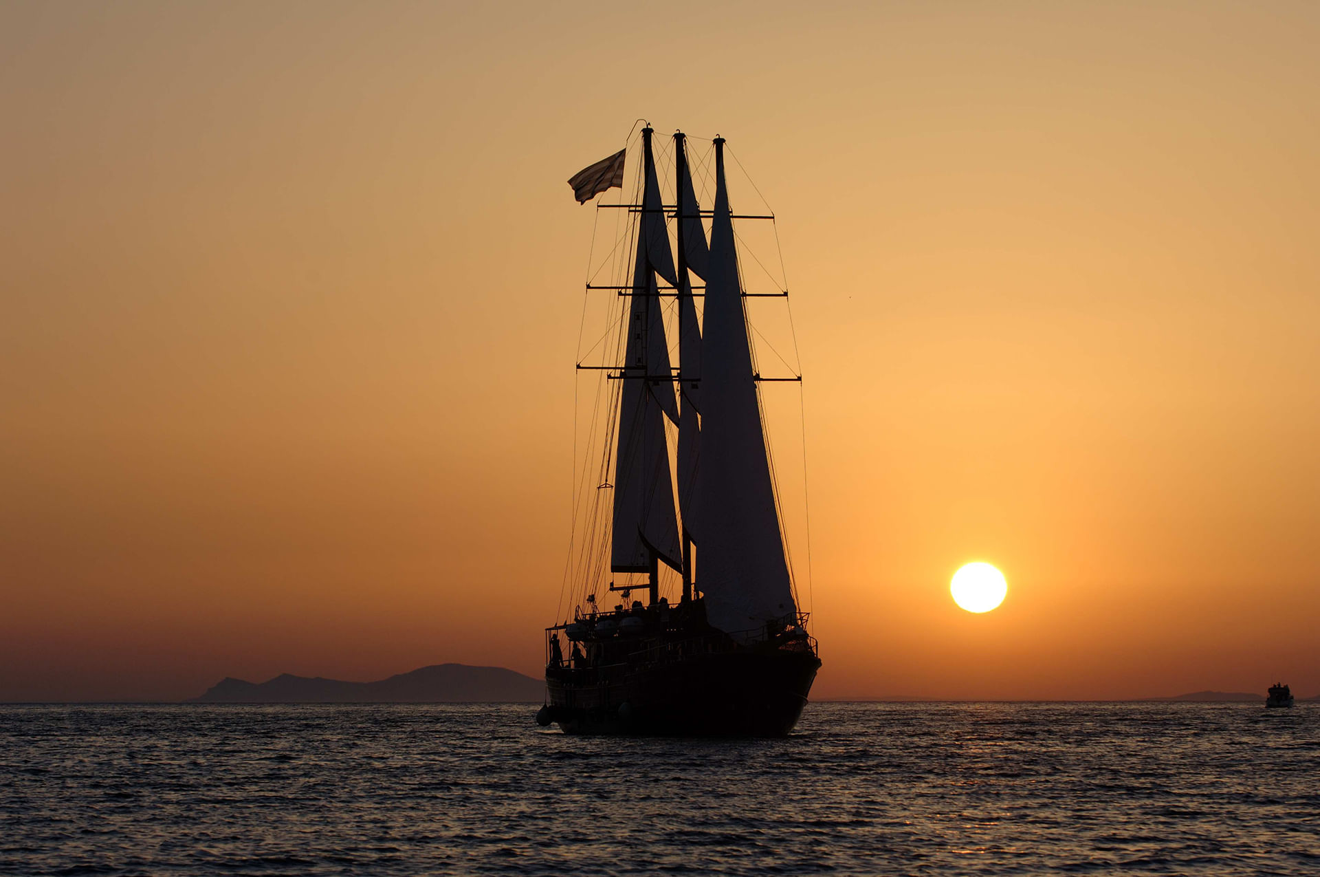 Watch the hue of colors spreading across the width of the sky and reflecting upon the unique caldera of the island. Back on-board, you can watch the sunset as it casts the sea and Santorini in a rainbow of colors. What's more, you'll also have the chance to swim in Santorini's famous hot springs too.