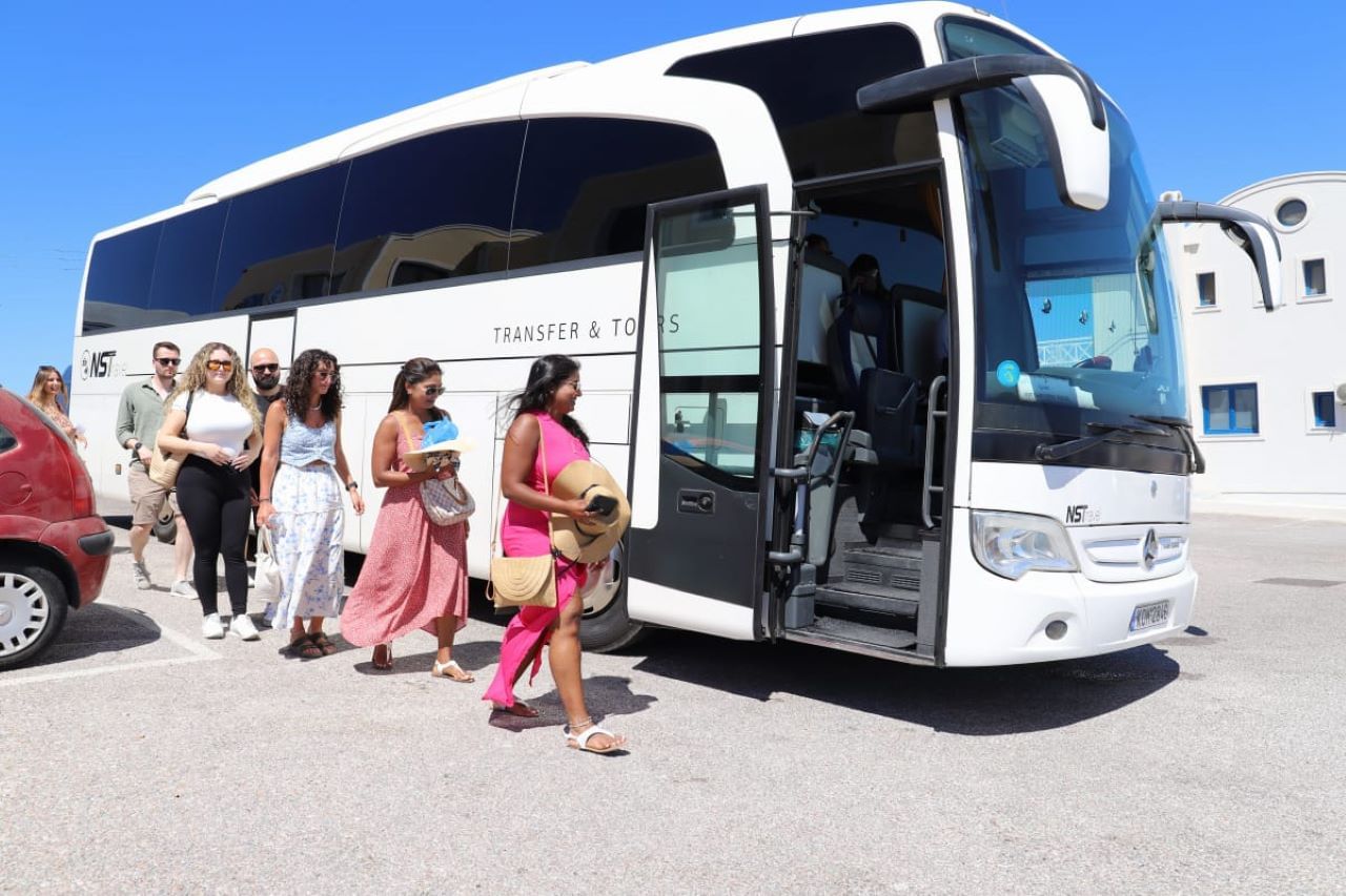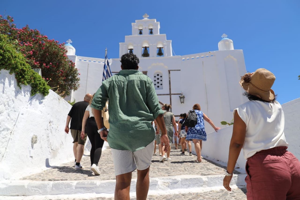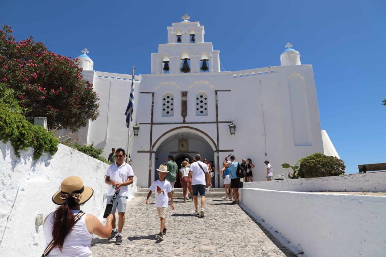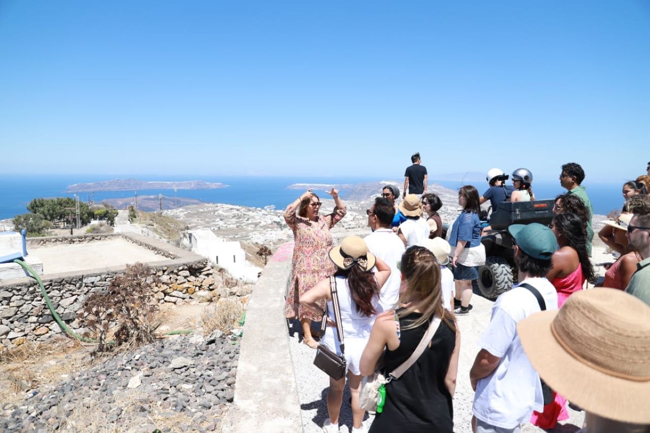 After pickup from your hotel, board the luxury coach and drive to Profitis Ilias, the highest point on the island. Take in an incredible panorama of the entire island of Santorini, and the stunning deep blue color of the Aegean Sea while learning about the island´s fascinating volcanic history.