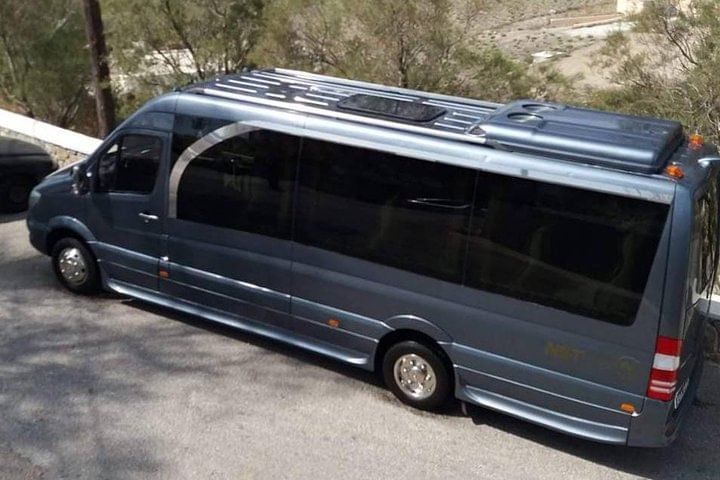 Experience a seamless transfer experience during your stay in Santorini with our shared shuttle service. Travel comfortably between Santorini National Airport, the port, and your accommodation in a spacious, well-maintained vehicle. Our fleet includes buses, mini buses, and vans, all equipped to handle both passengers and luggage with ease. Please note that while our service strives for convenience, it may not always provide door-to-door service; instead, you may be dropped off or picked up at your hotel or the nearest accessible stop.