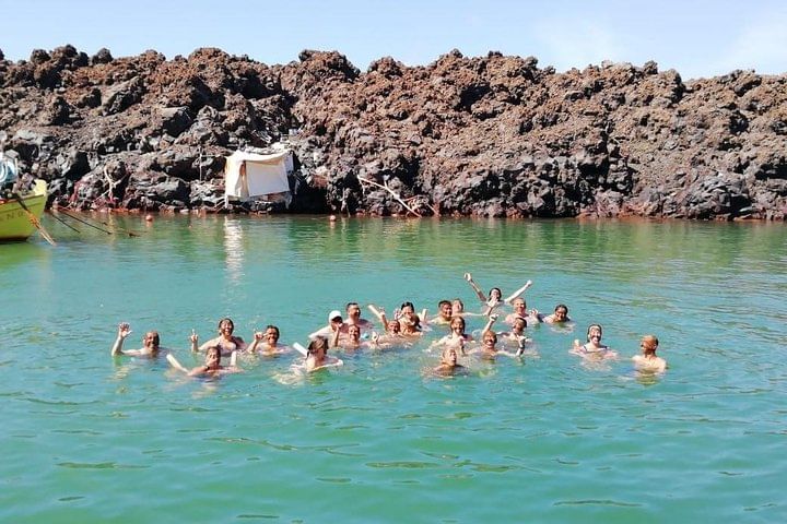 Return to the boat and continue to the second lava islet called Palea Kameni, also known as the Hot Springs. Jump off the boat and dive into green sulfur thermal waters.